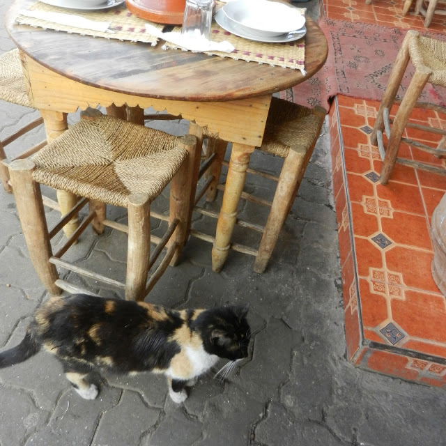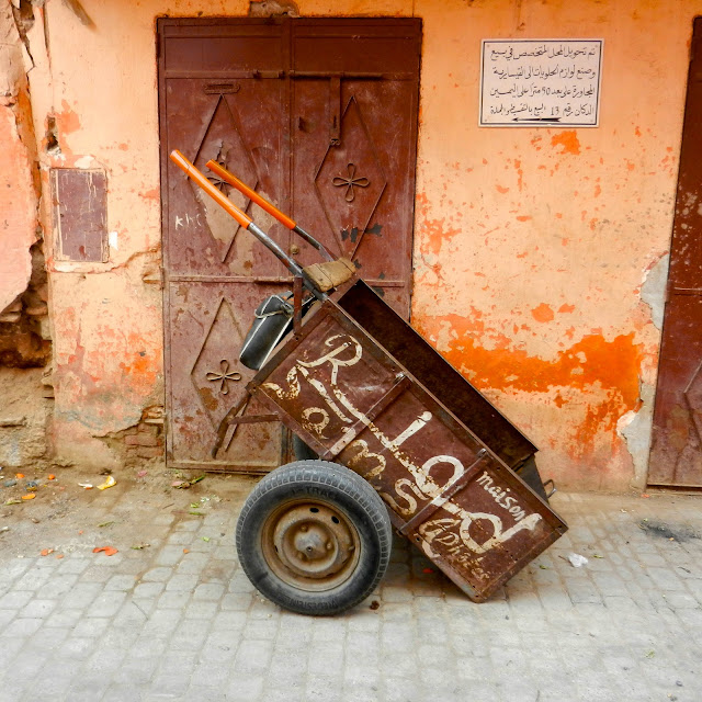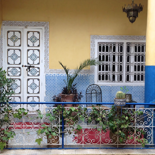 Here at Sherazade, the little old hotel we love in the medina right near Djemma ElFna, the windows have safety grilles. How many patterns can you see?